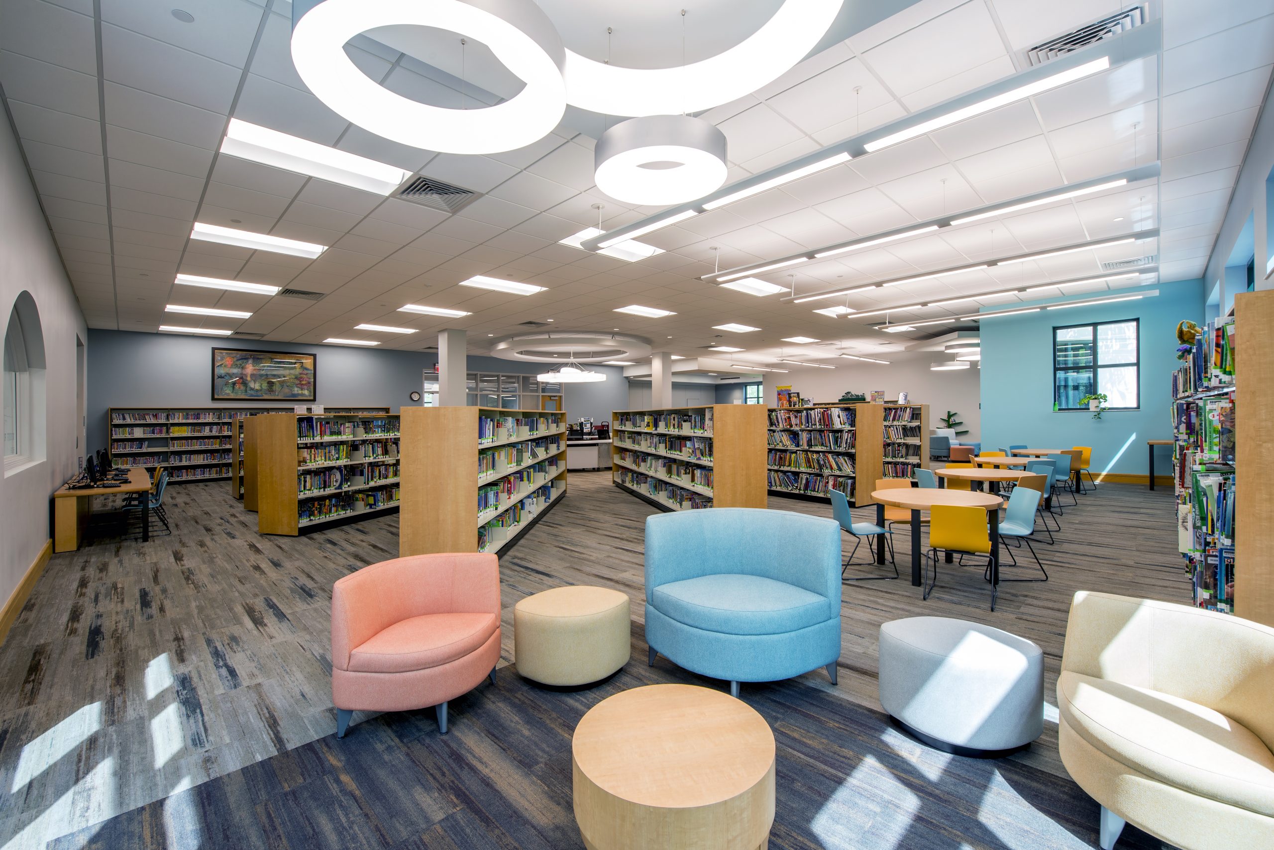 Williamson Design Associates designed new Children’s Wing addition to the existing Main Library. The new Children’s Wing includes space for children’s services a multipurpose rooms capable of running meetings simultaneously. A connector was developed to support a small café and gallery space.